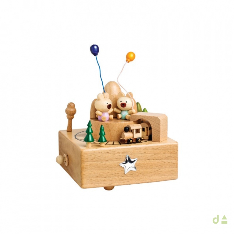 Caixa músical para bébé bilaminada (COMBOIO anda à volta ) Funciona a corda e tem um botão para on/off