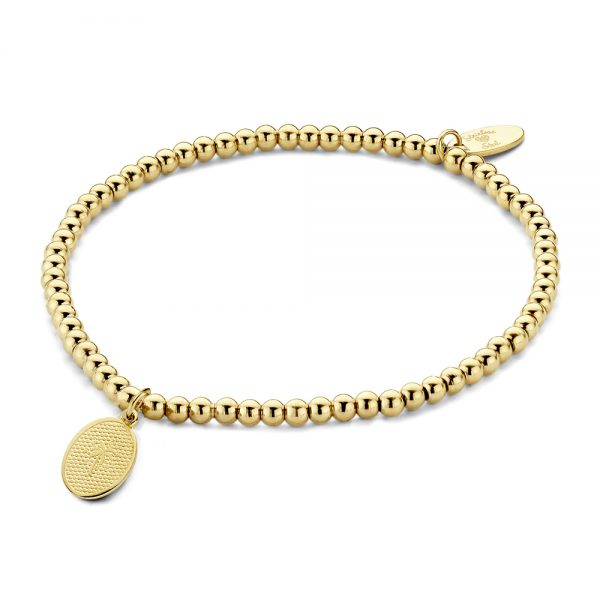 Pulseira de contas de aço inoxidável banhadas a íon ouro com pingente