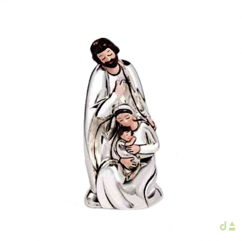 Dimensões: 12 cm Produto: PRESÉPIOS Tipo: RELIGIOSAS Motivo: SAGRADA FAMÍLIA Detalhes: COM COR Metal: BILAMINADO DE PRATA