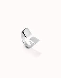 Anel banhado a prata esterlina. Acabamento liso e formato quadrado nas pontas. Feito na Espanha com um processo 100% artesanal. Joias para pessoas francas que querem chamar a atenção através das formas geométricas dessas peças. Uma coleção com uma clara inspiração cubista trazida para os dias atuais. Formas que se decompõem e se recompõem, oferecendo infinitas possibilidades de mix & match entre prata ou ouro e cristais pretos e brancos facetados. Descubra a coleção ser sin complejos.