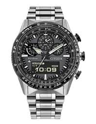 Secção analógica: horas, minutos, segundos, relógio de 24 horas, UTC. Cronógrafo (minutos, segundos). Secção digital: horas, minutos, segundos, fuso horário. Calendário: ano, mês, data, dia da semana. Cronógrafo. World Time: 43 áreas, incluindo 29 fusos horários. Timer 99 minutos. Indicador Ligh-Level. 2 alarmas. Calendário perpétuo até 31/12/2199. Indicador do nível de carga da bateria Eco-Drive. Funções: prevenção de sobrecarga, aviso de subcarga, atribuição de diferença de tempo, deteção de choque. Seleção da língua. Luz LED.