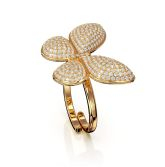 Anel com escultura de borboleta em zircônia branca e bronze banhado a ouro 24k.