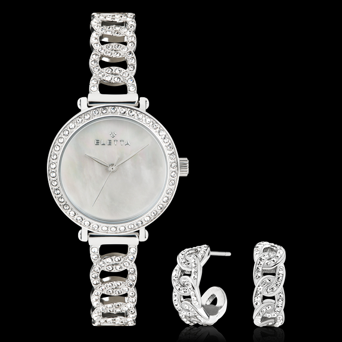 | Bracelete | Aço, Cristais, Malha Milanesa |