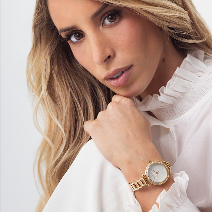 | Bracelete | Aço, Cristais, Malha Milanesa |