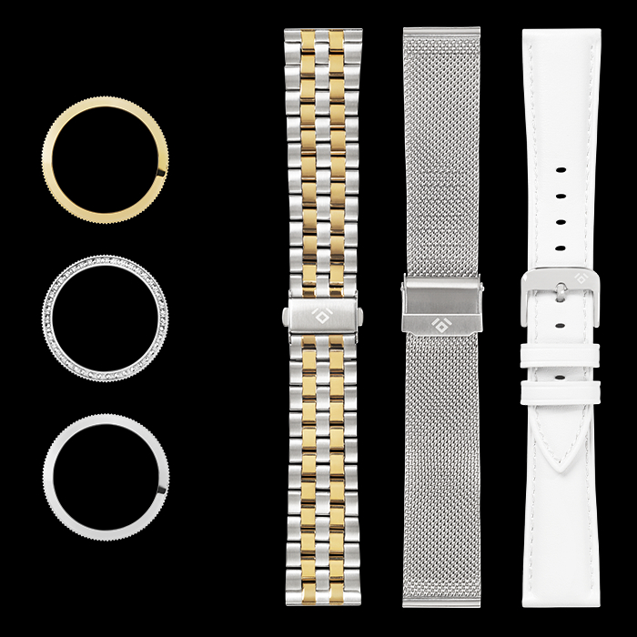 | Caixa do Relógio | Aço, Cristais |